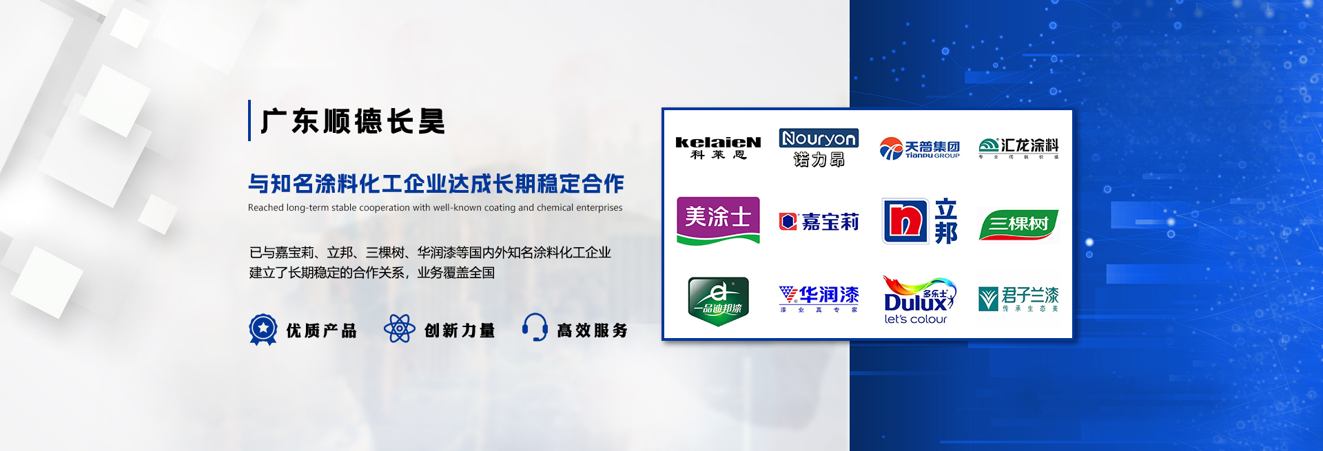 广东顺德长昊贸易有限公司成立于2006年,总部位于“中国涂料之乡”——广东省佛山市顺德区,是一家专注于化工助剂领域的专业化贸易企业。公司注册资本100万元,拥有近50名员工,其中技术人员占20%。年营业额达近亿万元人民币。凭借优质的产品与服务,公司已与嘉宝莉、立邦、三棵树等国内外知名涂料化工企业建立了长期稳定的合作关系,业务覆盖全国。